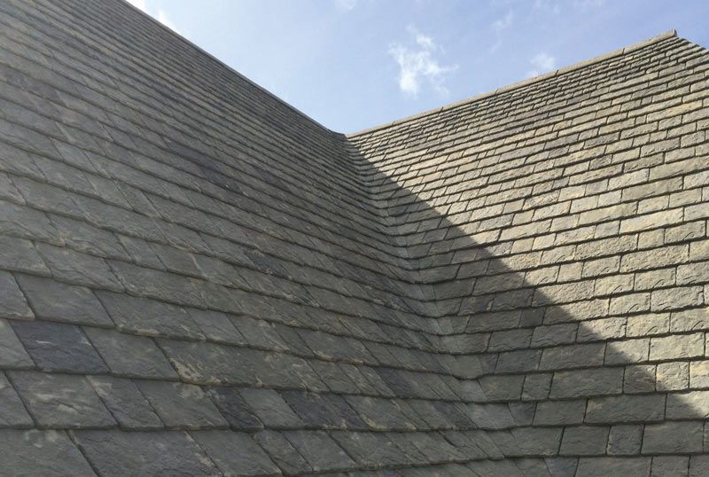 Greys Heritage Reproduction Stone roofing slates have been designed in consultation with professional roofers and architects, to achieve an easy to lay slating format, resulting in a coursed and diminishing stone slate roof.