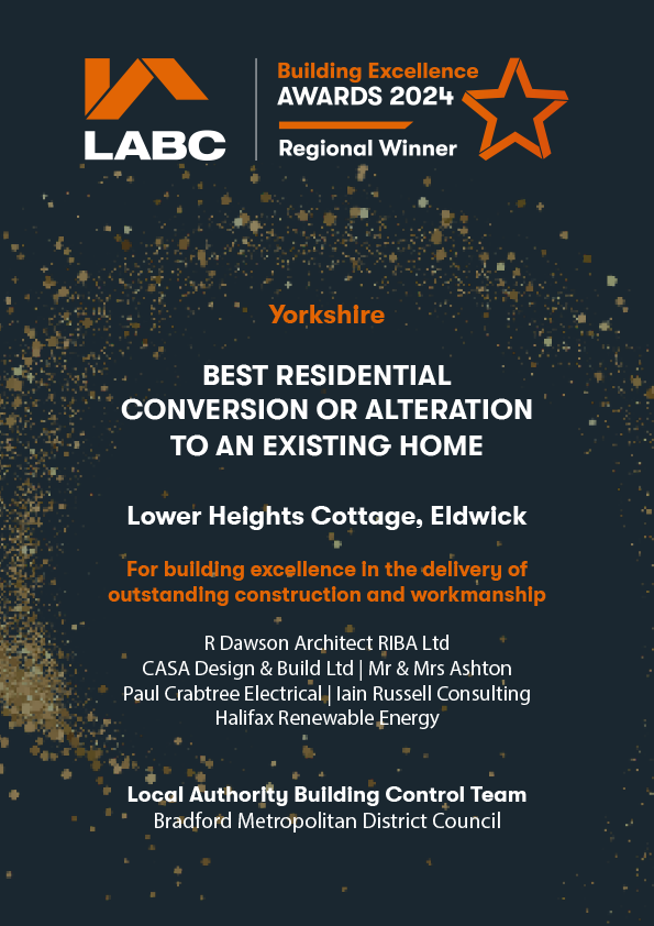Converted from unused holiday home from 1992, a rectangular barn to a new home.Winner of the Yorkshire Region LABC Award for Best Residential Conversion or Alteration to an Existing Home 2024