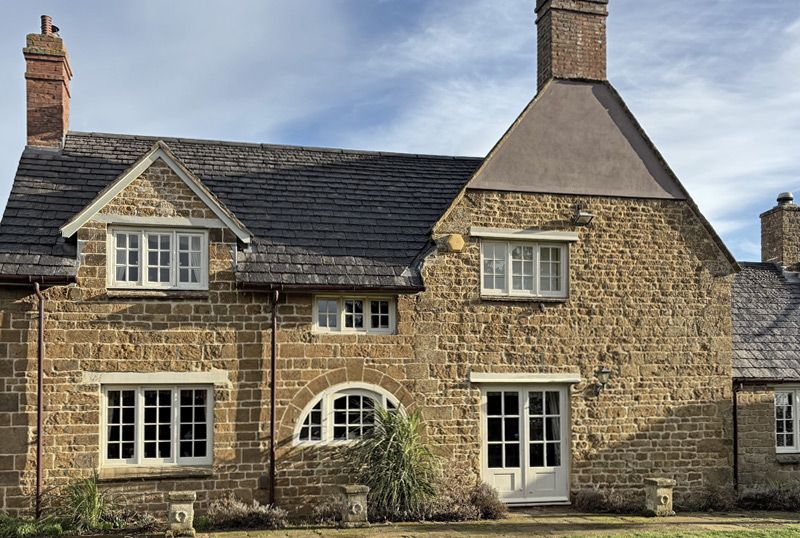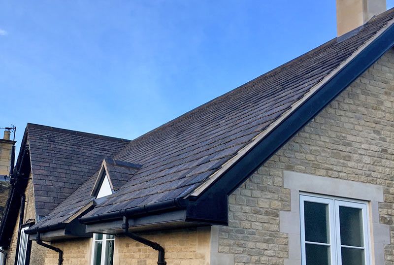 Greys Heritage Reproduction Stone roofing slates have been designed in consultation with professional roofers and architects, to achieve an easy to lay slating format, resulting in a coursed and diminishing stone slate roof.